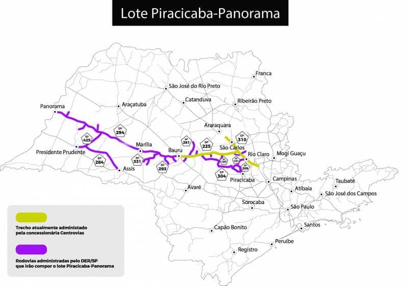Está previsto para acontecer nesta quarta-feira (8) o leilão do lote Piracicaba-Panorama, por parte do Governo Estadual junto à Agência de Transporte do Estado de São Paulo (Artesp). Trata-se de 1.273 quilômetros de rodovias entre a cidade de Piracicaba e o município de Panorama, na divisa com o Mato Grosso do Sul, que passarão a contar com novas concessões. De acordo com a Artesp, ao longo de 30 anos deverão ser investidos R$ 14 bilhões em obras de ampliação e modernização nos trechos.