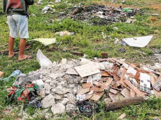 Entulho, madeira e outros resíduos. Todo esse material atualmente vem sendo descartado irregularmente em uma área pública próxima à Rua 16 com a Rua 26, no bairro Mãe Preta.