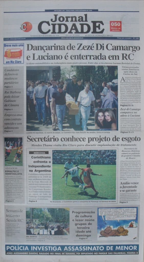 Era 26 de setembro de 1999 quando duas bailarinas da dupla Zezé di Camargo e Luciano e outras duas pessoas morreram em um acidente automobilístico na Rodovia Anhanguera, em Sumaré.