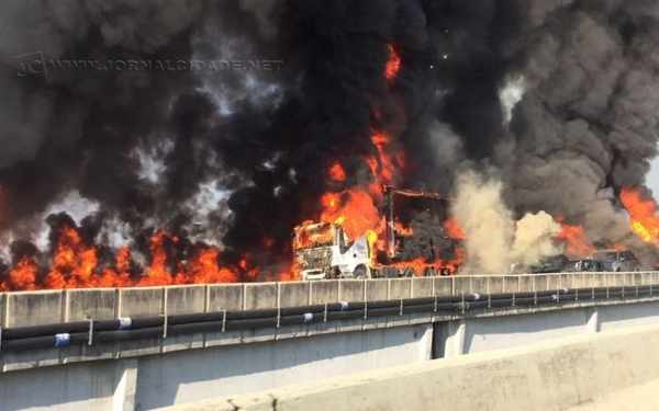 Na tragédia, ocorrida às 7h40 no km 75 da SP-070, com o engavetamento de 36 veículos, duas pessoas morreram: Marcos César Pereira, de 46 anos, que teve o corpo carbonizado, e Irineu Faria, de 88 anos, que foi projetado para a parte inferior de um viaduto. Os corpos foram liberados ontem mesmo pelo Instituto Médico Legal (IML) de Jacareí.