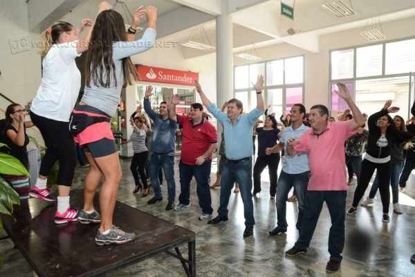 Servidores do paço municipal se movimentaram ao som de muita música no início da manhã desta quarta-feira (31). A atividade contou com participação do prefeito João Teixeira Junior, o Juninho da Padaria, que ressaltou a importância de praticar esporte todo diariamente. “O desafio de fazer exercício físico deve ser diário para sair do sedentarismo que prejudica a saúde das pessoas”, disse.