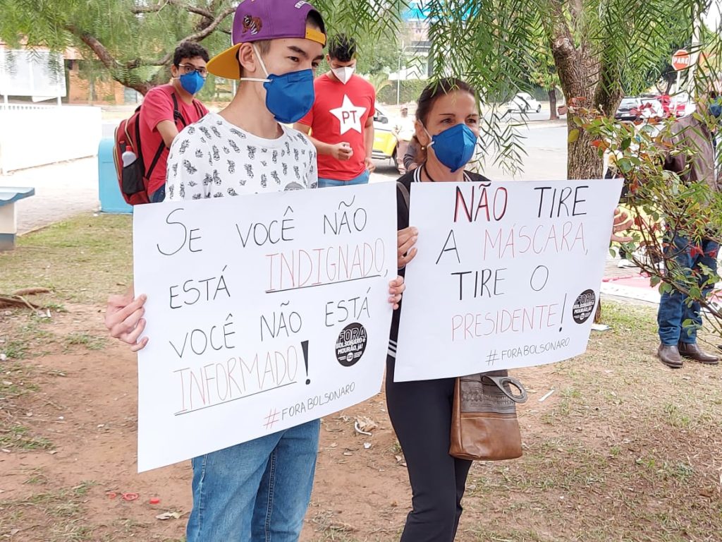 Manifestantes protestam contra o governo Bolsonaro na manhã deste sábado em RC