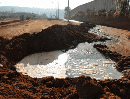 O vazamento foi causado por rompimento na tubulação, provocado por uma máquina que trabalha nas obras do Anel Viário