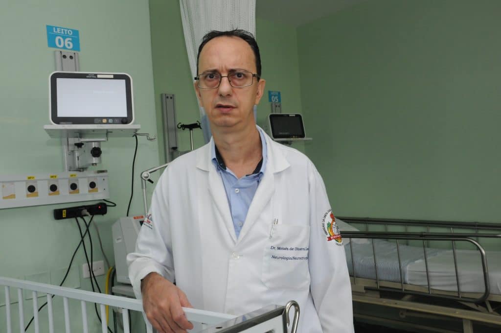 O neurologista intensivista da Santa Casa de Piracicaba, Moíses Oliveira Lara, não imaginava que de uma hora para outra trocaria o papel de cuidar dos pacientes para ser um paciente que precisasse de cuidados. Sim, tudo foi muito rápido, de acordo com ele. Numa sexta-feira, ele acordou com dor de cabeça e os sintomas foram progredindo ao longo do dia. Ele havia sido infectado e estava com a covid-19. “Percebi que algo estava errado quando fui comer uma fruta e não senti o gosto, o cheiro também havia mudado. Paralelo a isso a dor de cabeça ficava insuportável, dor terrível também em todas as partes do corpo, meu fôlego foi ficando curto, minha respiração mudou”.