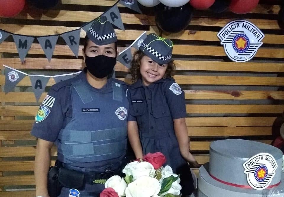 A pequena completou 5 anos e pediu carinhosamente para que a policial rodoviária participasse de sua festinha. A soldado Bianca esteve na festa junto com seus familiares, que também são policiais e presentearam a Maria Alice com uma mini farda da Polícia Militar.