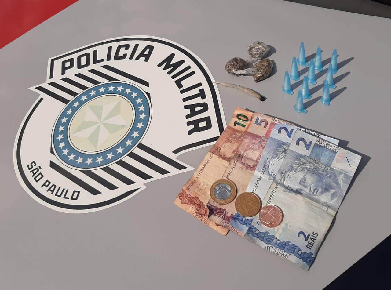 Foi constatado que se tratava de um menor e que ele estava vendendo entorpecentes na região. Com ele foram localizados 10 eppendorfs contendo cocaína, três porções de maconha, um cigarro de maconha e a quantia de R$ 20,30.