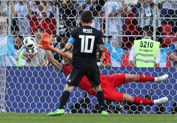 Perto dos 20 minutos, a Argentina sofrendo atrás do segundo gol, mas preocupada com o contra-ataque, Messi foi esperança e frustração para os argentinos. Ele deu passe perfeito para Meza, que sofreu pênalti. Na cobrança, Messi desperdiçou o chute salvador. O goleiro Halldorson fez a grande defesa de sua vida e garantiu o empate. Em sua primeira partida na Copa, a Islândia fez história ao segurar o gigante argentino.