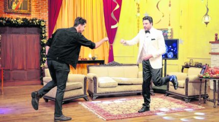Vitor Santos participou do especial de Fim de Ano do programa The Noite, com o apresentador Danilo Gentili, no SBT, e celebrou a conquista (foto – Lourival Ribeiro – SBT)