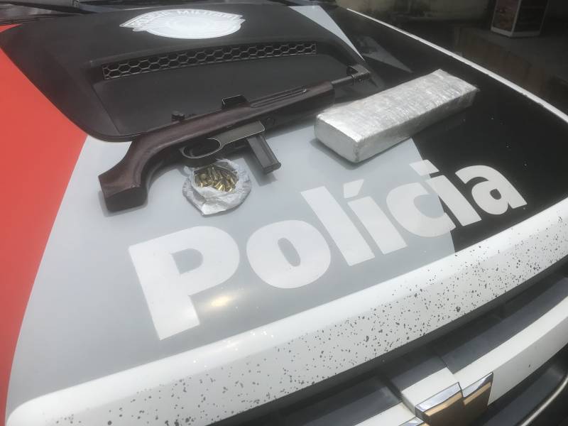 Além da arma, os policiais apreenderam munições intactas e maconha.