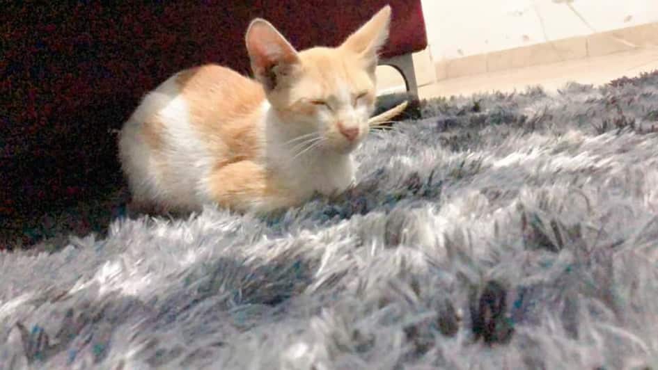 Segundo Edenilson, o gato deixado na rua de sua casa é macho, ainda filhote, e já está mais calmo aguardando uma nova família.