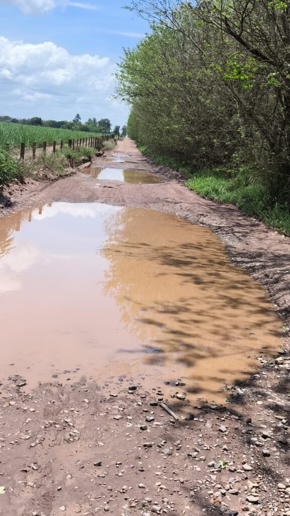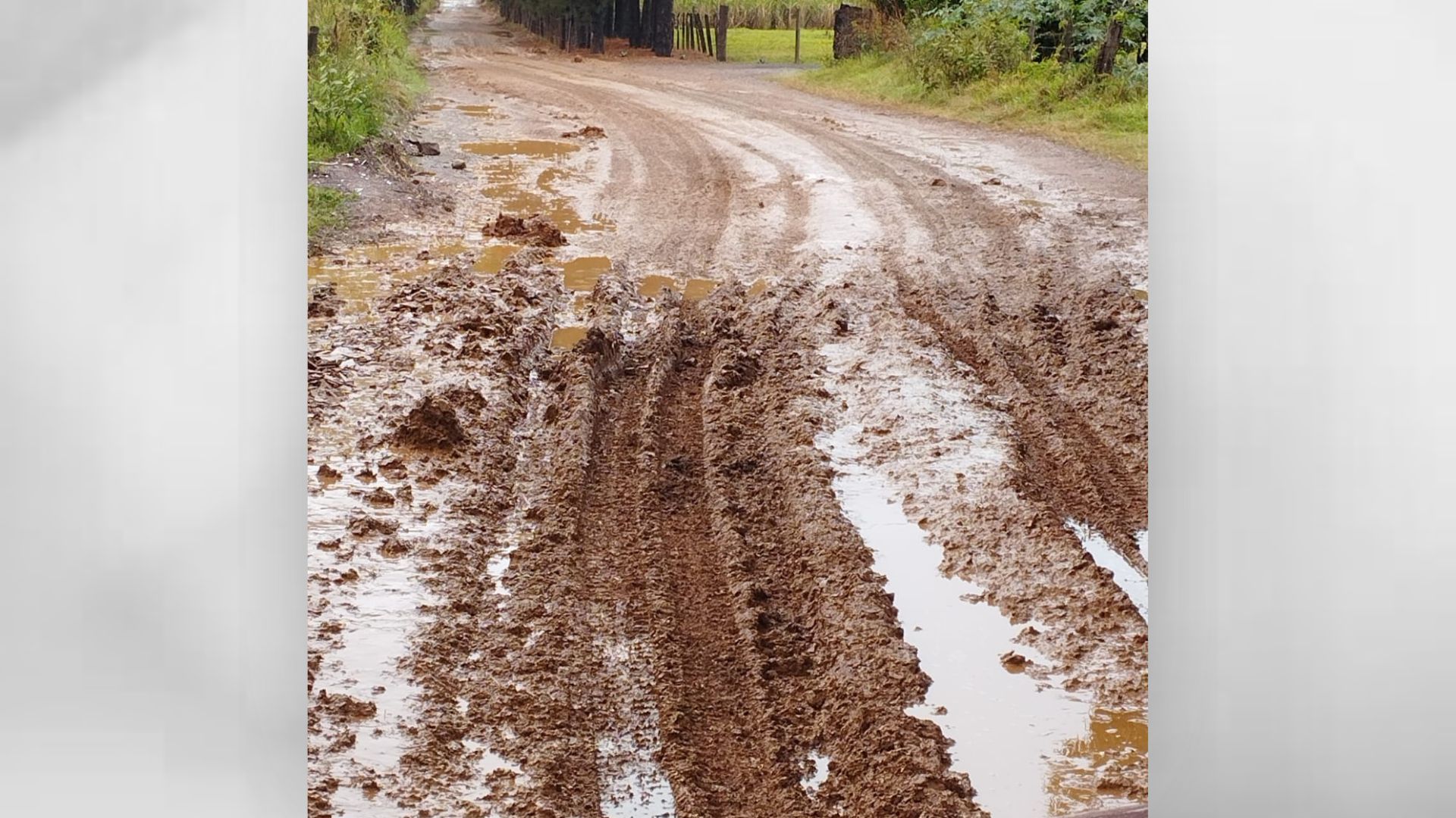 Usuários relatam dificuldades para trafegar no trecho rural e cobram manutenção; Prefeitura afirma que serviços foram retomados nesta segunda-feira (3)