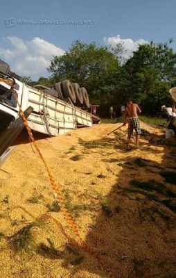 O boletim de ocorrência da Polícia Militar detalha que parte da carga espalhada no chão foi liberada para os moradores do bairro.
