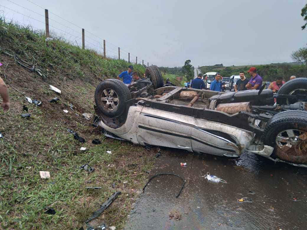 O acidente aconteceu próximo ao pedágio, onde o condutor da caminhonete, que trafegava no sentido Rio Claro, perdeu o controle do veículo, cruzou a faixa central e colidiu frontalmente contra um caminhão.