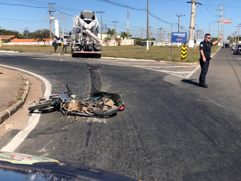 Um grave acidente de trânsito foi registrado no início da tarde desta terça-feira (23) no Distrito Industrial, em Rio Claro. Uma colisão envolvendo um caminhão e uma motocicleta deixou o motociclista gravemente ferido na região das pernas.