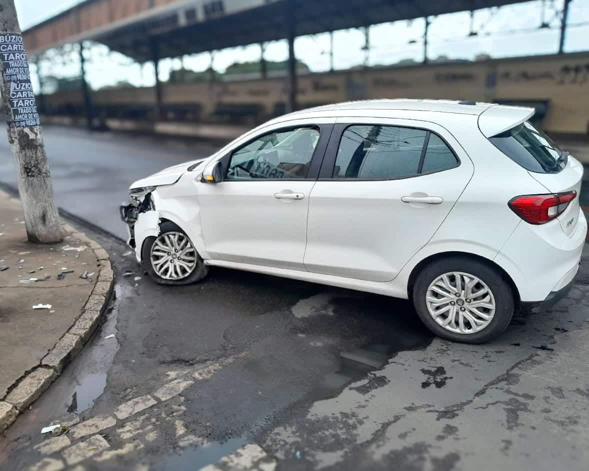 Um motorista de 38 anos colidiu com um poste no centro. A Guarda Civil foi chamada e encontrou o condutor sem ferimentos aparentes, mas com fala pastosa, raciocínio lento e dificuldade de equilíbrio. Ele recusou o teste do etilômetro, mas aceitou fazer coleta de sangue na UPA. O veículo, um Fiat Argo 2021, foi guinchado.