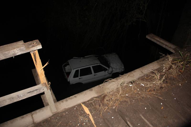 O Fiat Uno, que não tinha seguro, ficou no rio, mas o motorista conseguiu sair do veículo. Cleiton Araujo dos Reis foi socorrido por um munícipe, que o ajudou no local, e foi levado, com ferimentos leves, para a UPA do Cervezão.