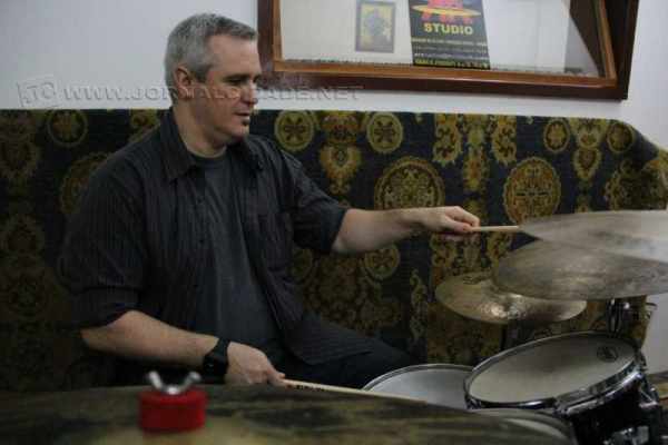 O baterista Mauricio Zottarelli deu uma canja no AR Studio, do músico Anderson Rossetti (Fotos/Matheus Pezzotti)