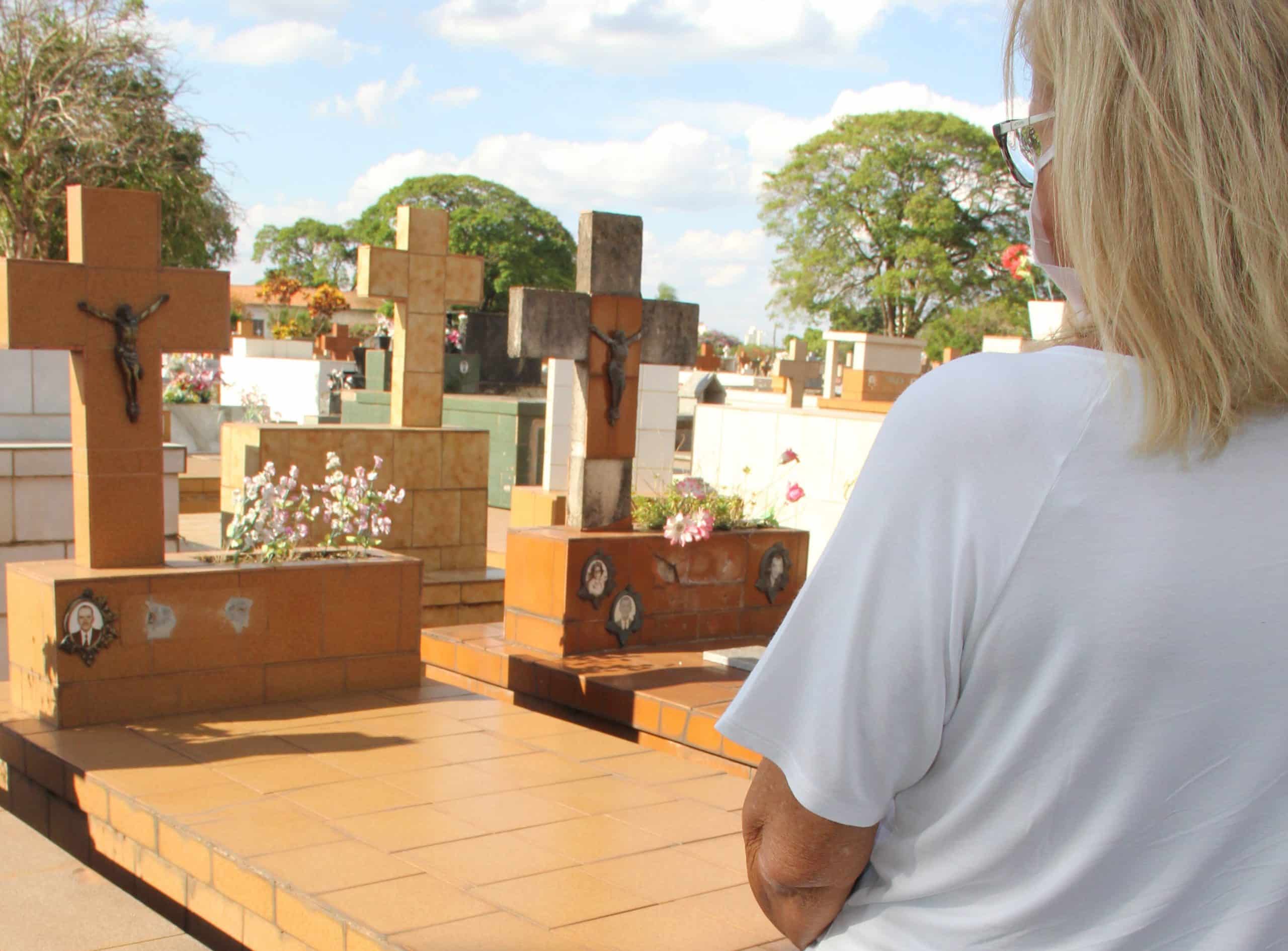 Nilva Dalbencio, de 66 anos, também esteve pela primeira vez no Cemitério São João Batista após perder o marido, Antonio Reis Dalbencio, vítima da Covid-19, há quatro meses, que faleceu em outra cidade, mas foi sepultado em Rio Claro. E a reportagem do JC acompanhou sua visita.
