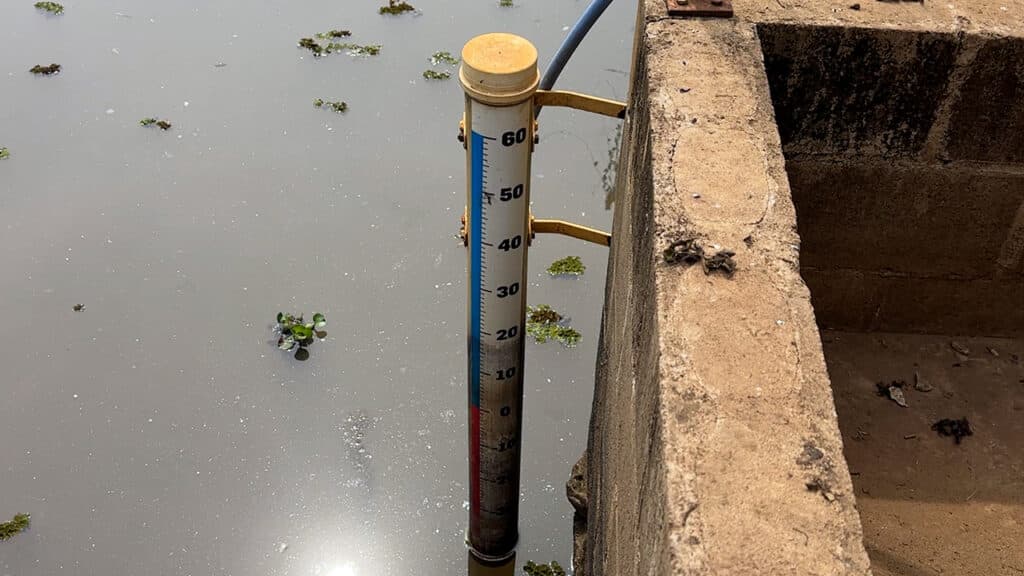 O nível da água do Ribeirão Claro vem baixando dia a dia. No dia 18 de agosto, a régua de marcação estava com 6cm. No dia 18 de setembro, passou para 3cm. Nesta sexta-feira, 18 de outubro, o nível caiu para -45cm. Nesse mesmo dia do ano passado, o nível do Ribeirão era de 18cm. Portanto, a diferença de 2023 para 2024 é de 63cm.