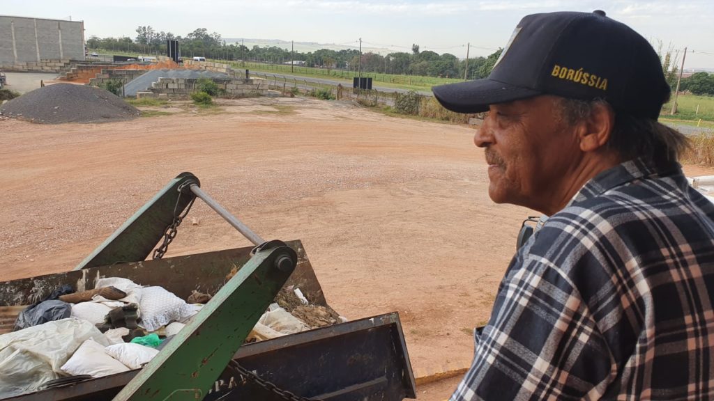 Geraldo é o balanceiro da noite e pesa por expediente aproximadamente 10 caminhões de lixo de diferentes partes da cidade. Ao receber a reportagem com muita simpatia e um jeito leve de ver a vida em sua sala, fez questão de contar ‘tim tim por tim tim’ tudo o que faz: “Quando eu chego eu subo as escadas, abro a minha sala e a primeira coisa depois disso é passar álcool em gel na minha mesinha. Depois é só esperar os caminhões irem chegando. Quando chega eu vou pesando e anotando tudo: o peso bruto, o da tara, o líquido… e assim eu vou tocando a vida”, enfatiza o idoso com um sorriso no rosto.