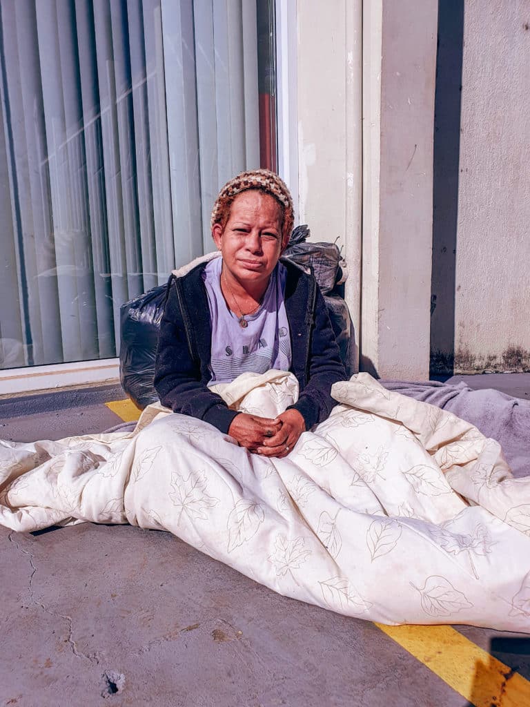 “A madrugada é longa. A noite é muito fria. Usamos muito cobertor, o que restou deles. Até tenho uma barraca, mas alguém pode vir e ‘tacar’ fogo na gente. Somos julgados o tempo todo. Ouvi falar que várias pessoas morreram por dormir dentro [da barraca]. Eu não quero morrer queimada. Precisamos de mais amor. Por isso meu filho me acompanha. A gente se aquece”, comentou.