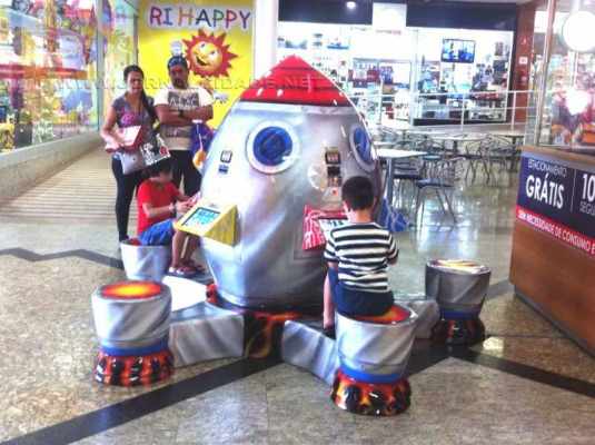 Outra novidade superbacana para as crianças de 1 a 10 anos é o Quiosque Foguetinho Touchscreen. Neste brinquedo, uma plataforma inédita, as crianças usam tablets touchscreen para brincar em mais de 50 jogos, todos indicados para esta faixa etária. Além de divertir e entreter, o brinquedo permite o desenvolvimento psicomotor das crianças. O Quiosque Foguetinho está em frente a Ri Happy.