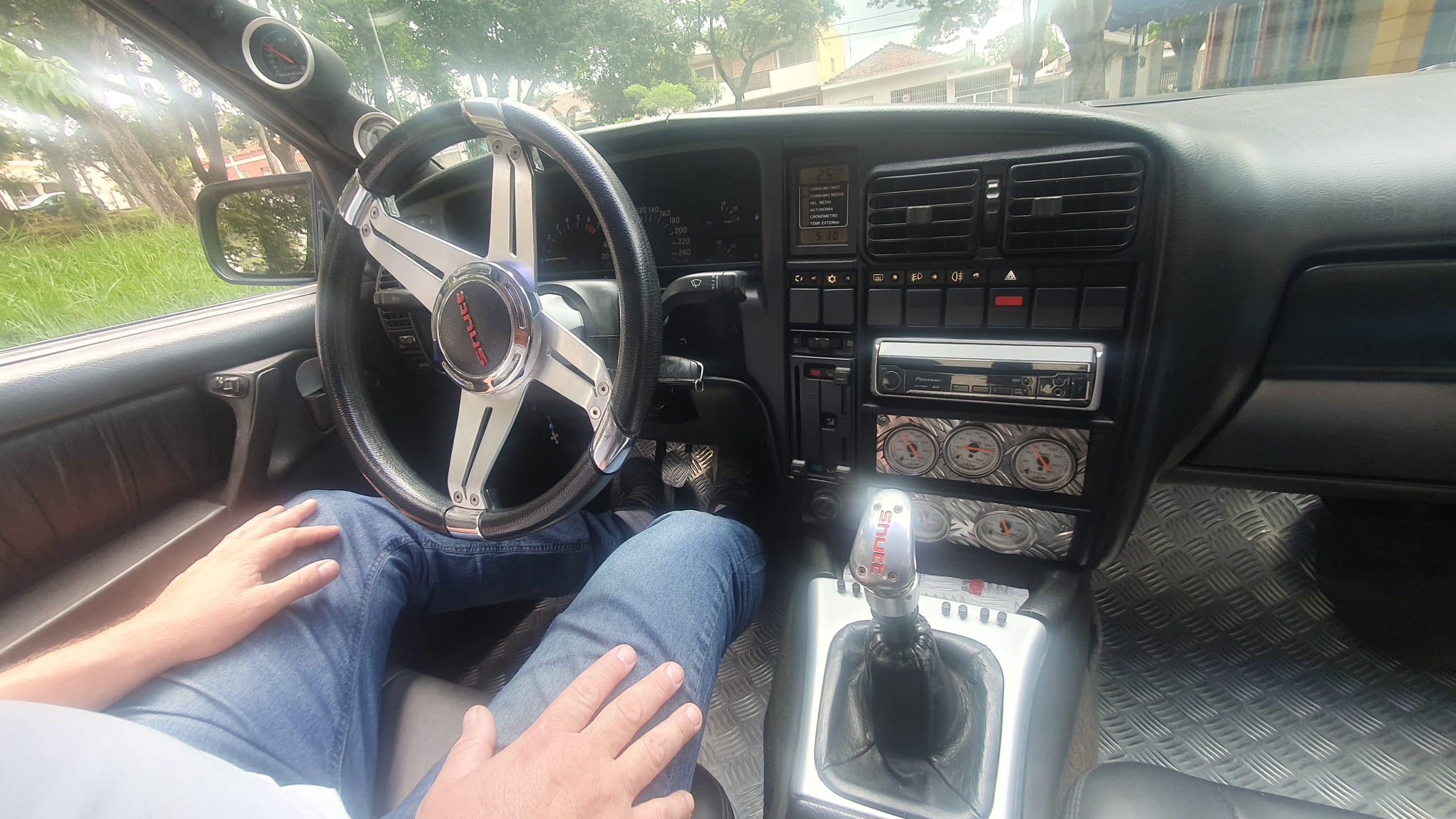 Ele também colocou rodas com aro 17, o original é 15, então não ficou nem muito grande e nem muito pequena, colocou volante e manopla de câmbio da Shutt, alguns relógios no painel (pressão de óleo e voltímetro de bateria), som com DVD retrátil e dois alto-falantes de 12 polegadas da Pionner, no assoalho um tapete personalizado em chapa de alumínio xadrez (popularmente ‘assoalho de ônibus’), mas o restante mantém tudo original. O que mais gastou nessas modificações foi com a suspensão, na época foi mais de seis mil reais.