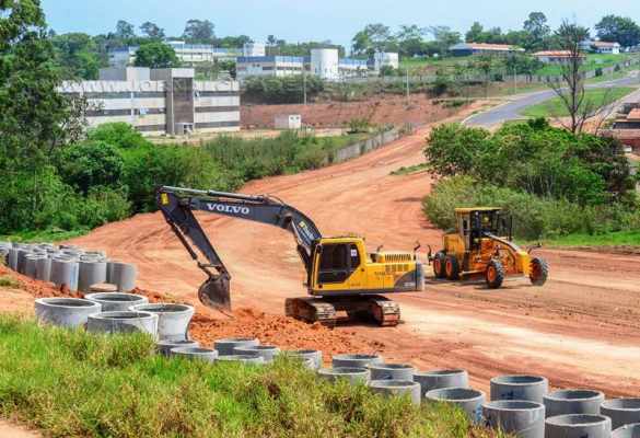Na última semana começaram a ser realizados os serviços para a implantação das galerias para captação de águas pluviais em trecho do Anel Viário, entre as avenidas 24-A e 62-A. A limpeza da área e instalação de tubulação antecedem a colocação de asfalto.