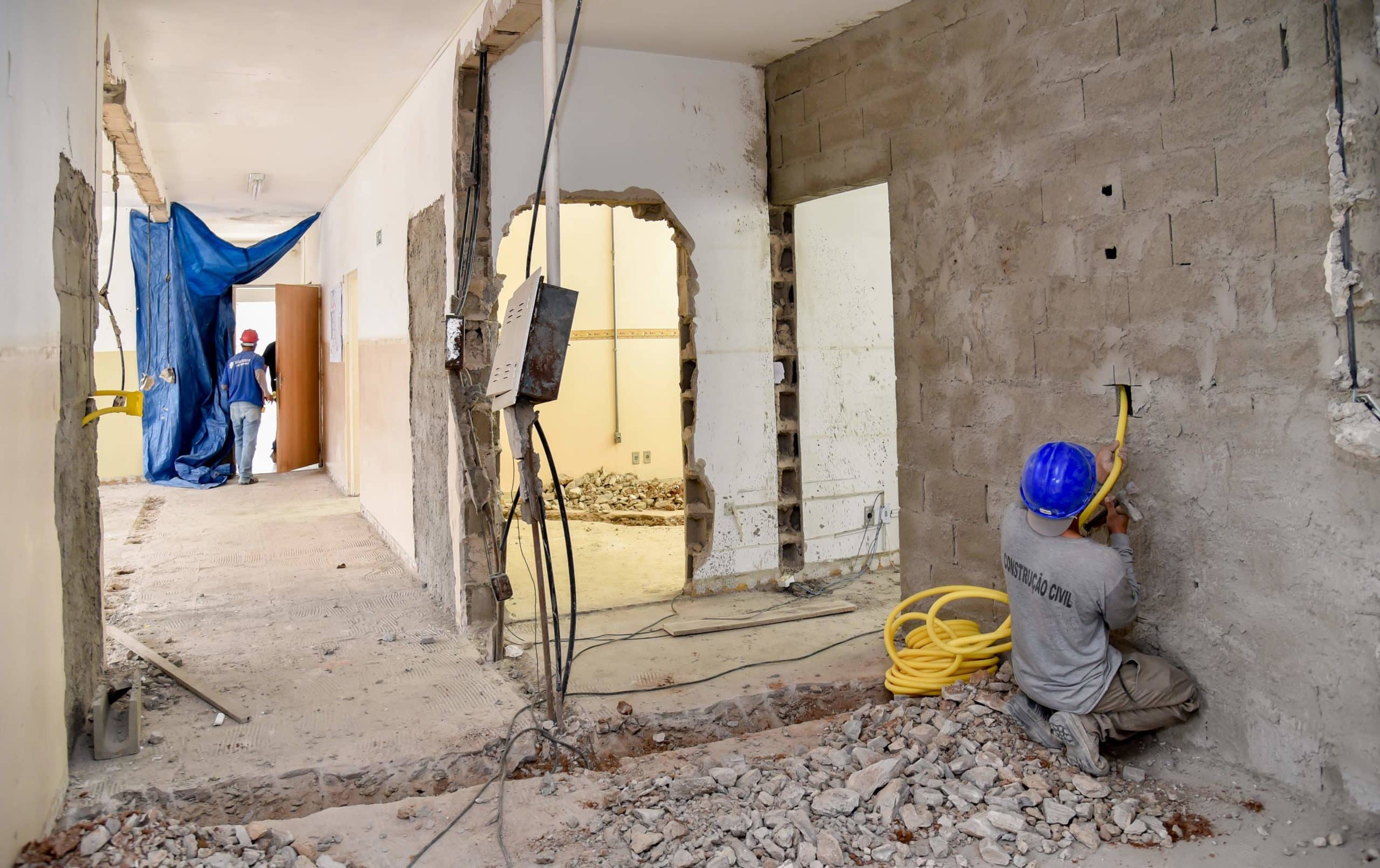 Por conta da dimensão e complexidade das obras, as intervenções estão sendo feitas por etapas. Neste momento, pediatria, sala de vacinas e de esterilização estão em reforma. A parte de alvenaria está sendo finalizada e nestes setores o telhado antigo foi retirado e em breve será feita montagem da nova estrutura. Parte da infraestrutura elétrica e hidráulica também está em execução.