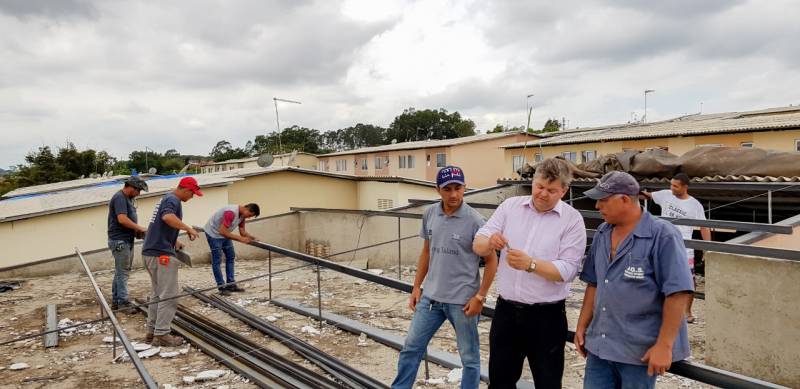 A empresa contratada pela construtora Direcional começou na quarta-feira (3) a fazer os reparos nos telhados. Segundo a Direcional, a infraestrutura está sendo recuperada para receber o novo telhado. Inicialmente está sendo substituída a estrutura metálica. “As chuvas atrapalham o ritmo dos trabalhos, mas mesmo assim eles continuam sendo feitos”, comenta o secretário municipal de Habitação, Anderson Golucci.