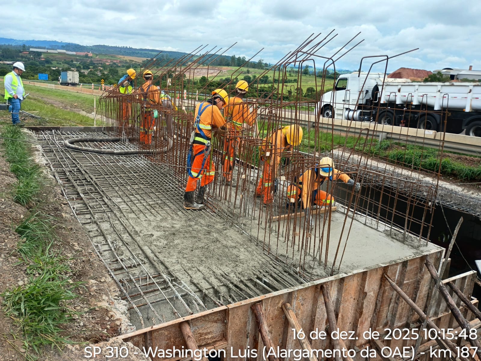 A Eixo SP Concessionária de Rodovias dá continuidade às obras de estreitamento parcial no viaduto localizado no km 174+620 da Rodovia Washington Luís (SP-310), em Rio Claro. O local, popularmente conhecido como Trevo da Viviani, passa por uma etapa de alargamento de suas faixas.