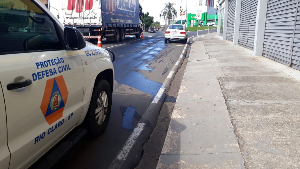 Uma ocorrência de derramamento de óleo na Avenida Tancredo Neves, próximo à rotatória com a Rua 14, mobiliza a Defesa Civil de Rio Claro na tarde desta quinta (20).