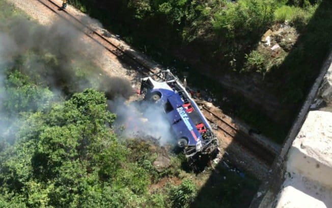 (FOLHAPRESS) – Um ônibus caiu de uma altura de aproximadamente 15 metros, na Ponte Torta, na BR-381, próximo a um posto da Polícia Rodoviária Federal em João Monlevade (MG), na tarde desta sexta-feira (4).