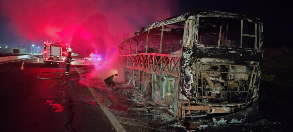 Um ônibus com 40 passageiros pega fogo na madrugada desta sexta-feira (10), na Rodovia Washington Luís (SP-310), em Corumbataí. O incidente ocorreu na altura do quilômetro 197 e mobilizou equipes de emergência da região.
