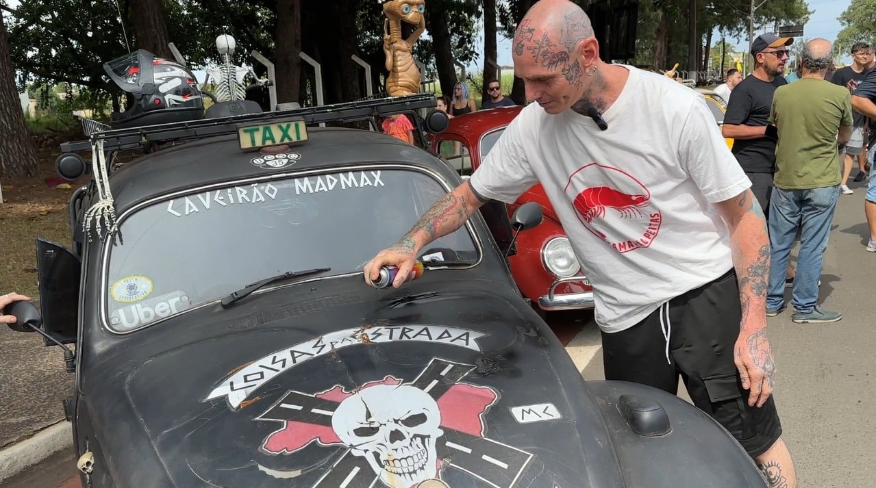 “Eu escolhi esse nome porque gosto desse estilo. Vivo entre motociclistas e também tenho motos customizadas, mas queria ter um carro e, como gostamos de caveiras e afins, decidimos deixá-lo assim. Cada Fusca tem a personalidade do seu dono, e este aqui é o meu Caveirão Mad Max”, explica.