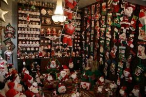 Árvores de Natal, presépios, bolas, guirlandas e, principalmente, muitos e muitos papais-noéis. Inês nem se lembra de ter contado quantos, mas o número deve chegar aos quatro mil exemplares do Bom Velhinho. São tipos em plástico, gesso, pelúcia, feltro, porcelana, sem contar as canecas, meias, sapatinhos, roupas, gravatas, pratos, copos, utensílios domésticos diversos e tantos outros itens.