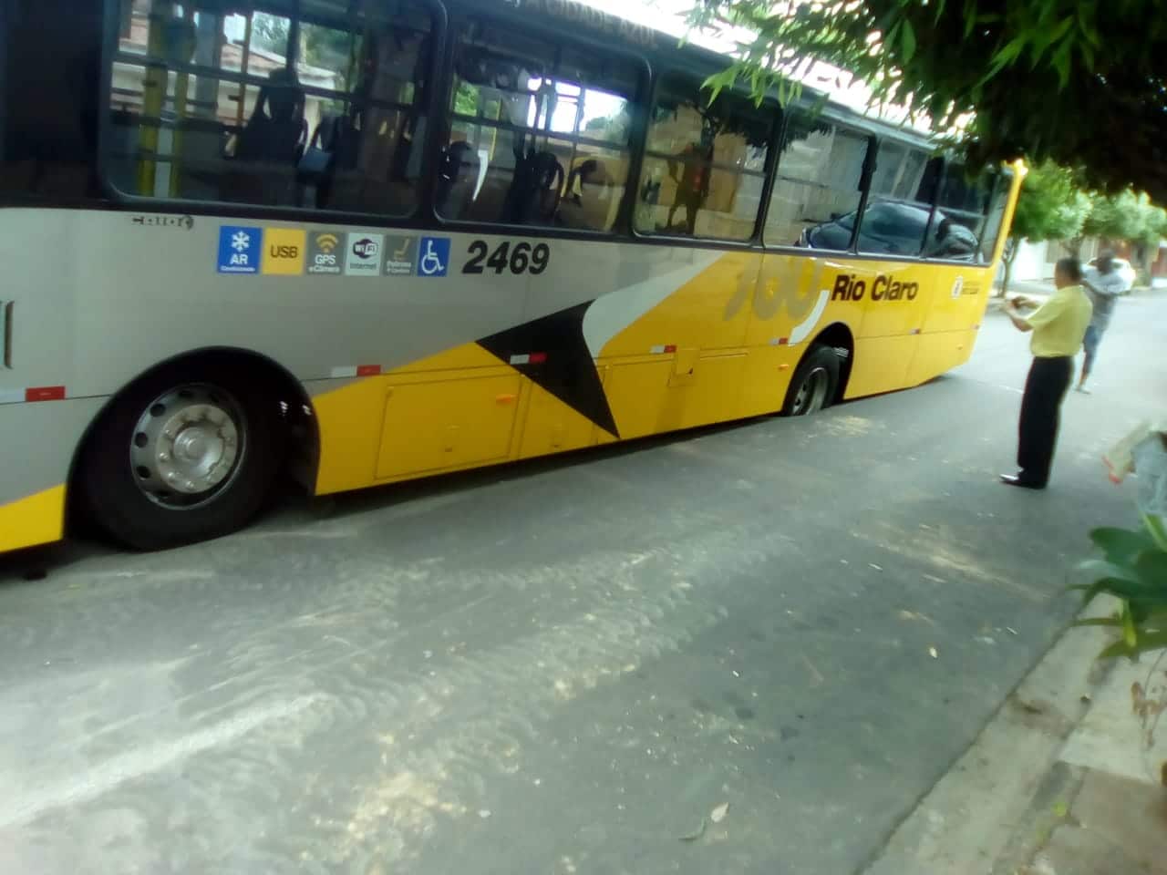 Um incidente aconteceu na tarde desta quarta-feira (3) com um ônibus da nova frota do transporte coletivo de Rio Claro. Ao passar pela Rua M-8 entre as Avenida M-19 e Avenida M-21, bairro Cervezão, o asfalto cedeu e uma das rodas do veículo ficou ‘presa’.