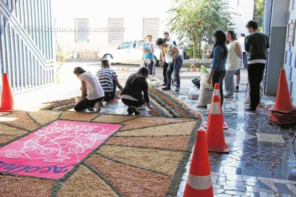 As ruas próximas às diversas igrejas de Rio Claro ficarão repletas de tapetes feitos com areia e serragem colorida durante esta quinta-feira (26).