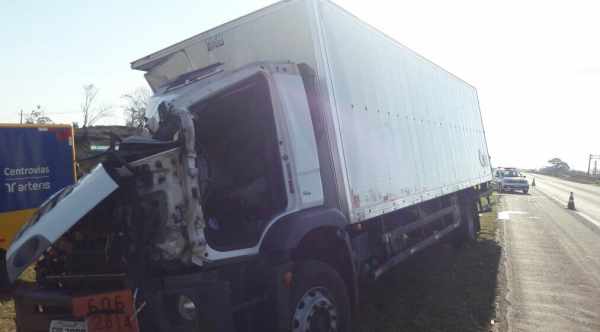 Segundo a Polícia Militar Rodoviária, o condutor de um caminhão com placas de Jaguariúna (SP) perdeu o freio do veículo e acabou colidindo contra outro caminhão e dois carros.