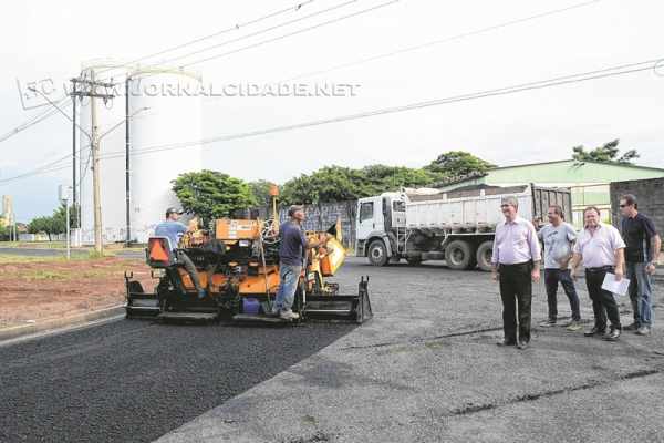 A pavimentação da nova rotatória começou pelo trecho ao lado da creche municipal do bairro Vila Verde. Paralelamente, o trabalho de implantação de guias e sarjetas continua neste momento no prolongamento do Anel Viário na Vila Industrial.