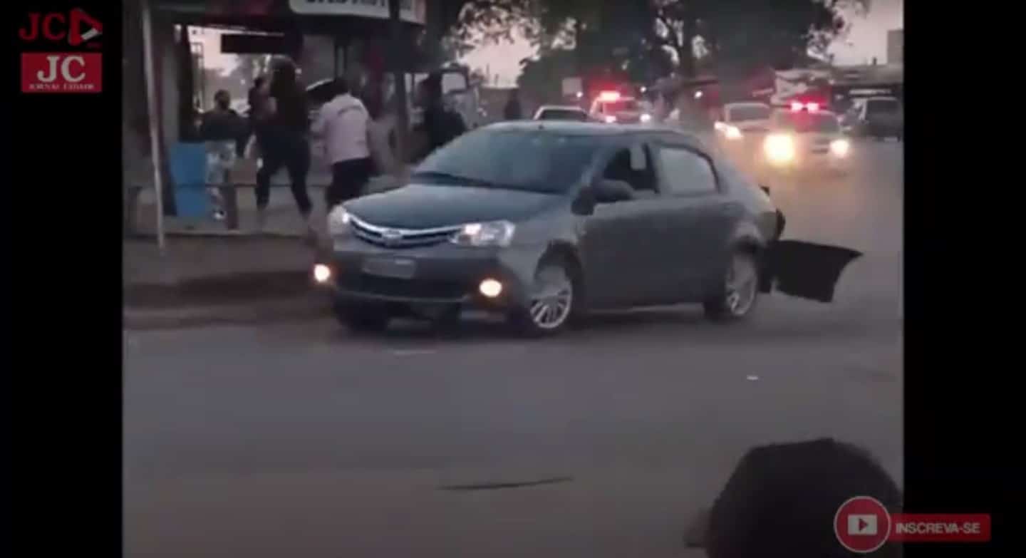 Em um dos vídeos mostra que uma viatura do BAEP encurrala o veículo do suspeito e na sequência se ouve os disparos de arma de fogo. Também nas imagens é possível ver o indivíduo colocando a mão para fora. De acordo com a PM, o homem atirou primeiro.