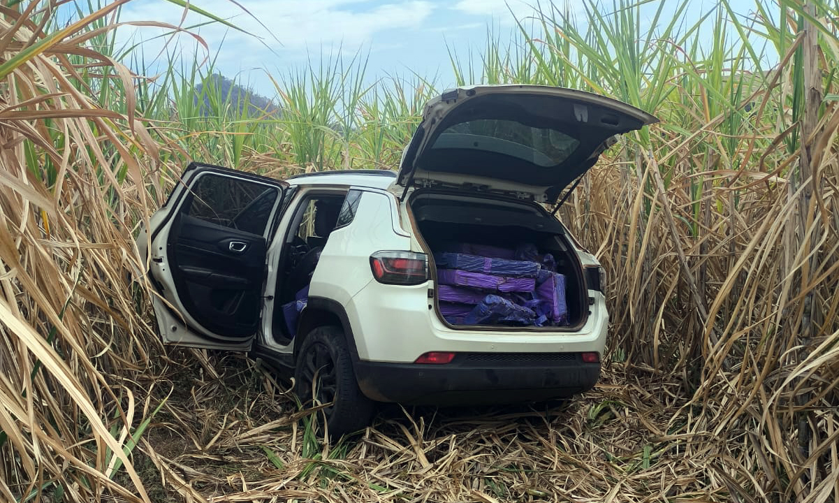 Policiais militares registraram uma ocorrência de perseguição na área rural de Ipeúna (SP), que resultou na apreensão de 456,96 kg de maconha, um Jeep/Compass branco, placas falsas, além de outros materiais. O veículo foi seguido até perder o controle em uma curva e invadir um canavial. Dois ocupantes abandonaram o carro e fugiram a pé pela plantação.