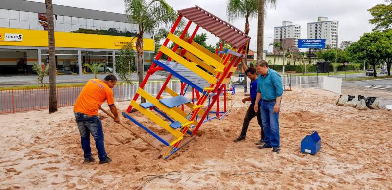O playground que será a nova atração da praça Dalva de Oliveira, uma das principais de Rio Claro, está sendo instalado. O prefeito João Teixeira Junior, o Juninho da Padaria, acompanhou na segunda-feira (8) parte dos trabalhos e reforça que o local, que já é uma das referências em lazer e convivência, ficará ainda mais atraente para crianças e familiares. “As mães e pais terão uma opção a mais para o passeio com as crianças”, resume Juninho, convidando todos a conhecerem o parquinho, que em breve estará pronto. “Essa é uma região por onde passam pessoas de vários bairros que poderão ter momentos agradáveis com seus filhos aqui, assim como os moradores das redondezas”, acrescenta.
