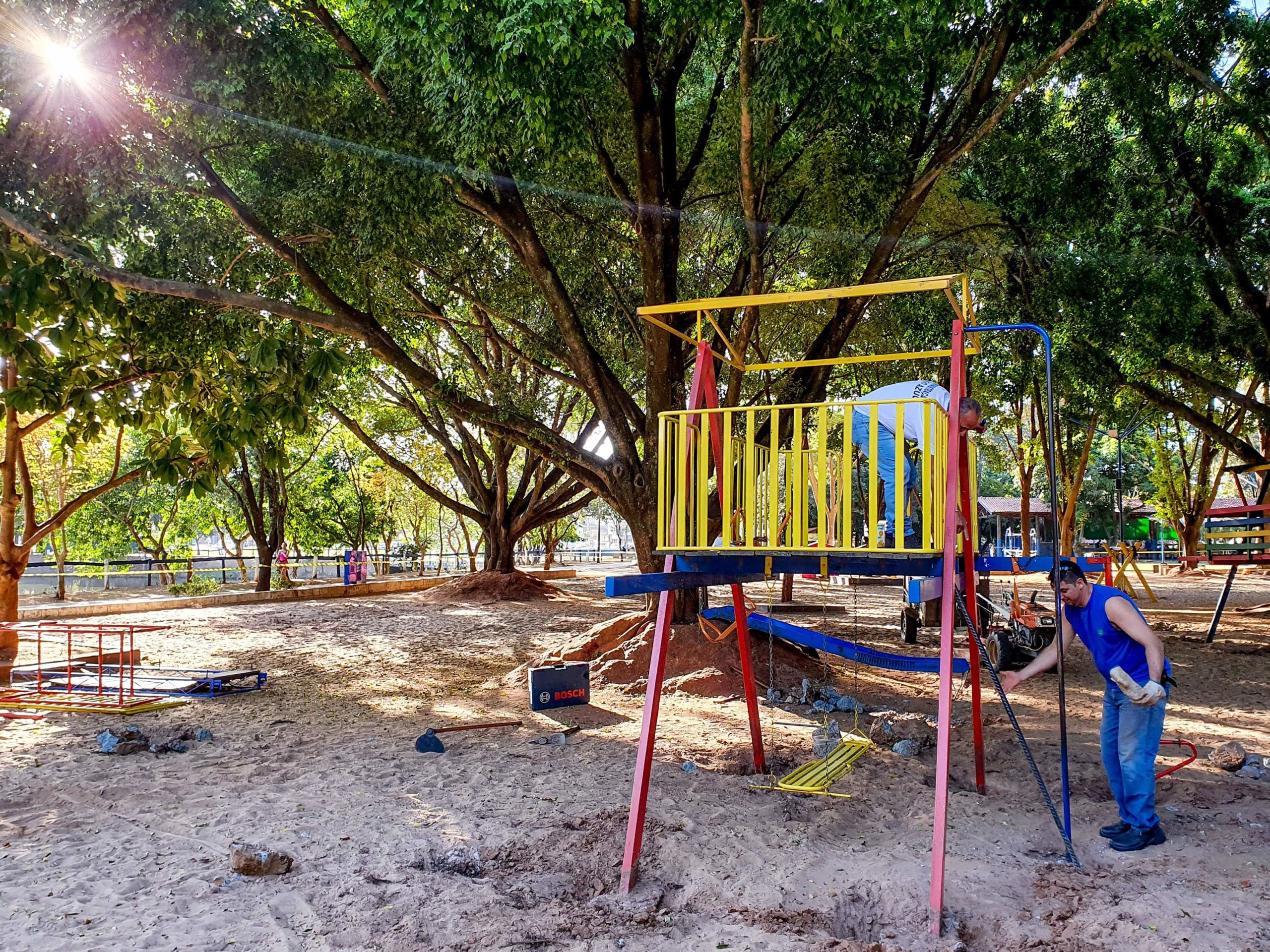 A prefeitura de Rio Claro iniciou o trabalho de remoção dos equipamentos do playground do Parque Municipal Lago Azul para instalar novos brinquedos.