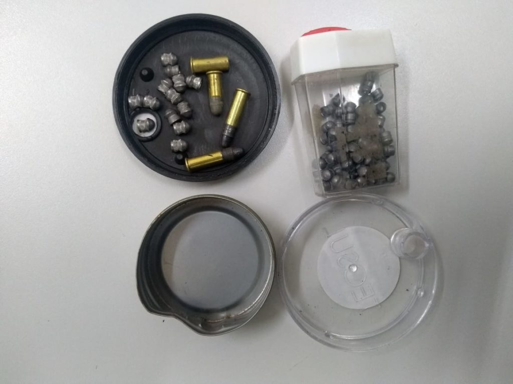 Em ato contínuo em outra residência, também mencionada na denúncia, foi efetuado contato com o morador e encontrado 14 cartuchos deflagrados de munições de calibre .22 e 17 munições intactas calibre .22. Havia ainda 7 gaiolas penduradas com alimentação e água para aves, 2 alçapões, 2 redes laterais e 2 redes de armar para captura de aves silvestres. O envolvido confirmou ter soltado as aves ao saber da fiscalização ambiental.
