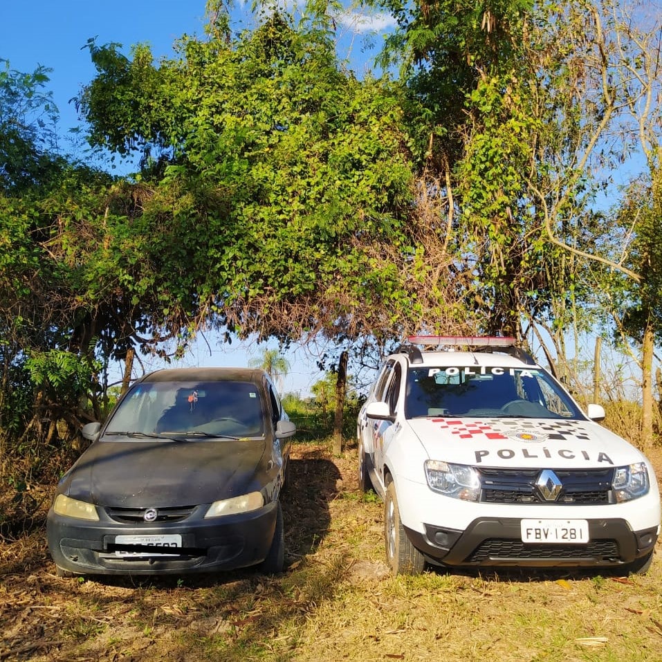 Equipe da Polícia Militar em patrulhamento pela estrada do bairro Eritréia visualizou rastros de pneus no solo sentido a uma mata. Após buscas encontraram um veículo Celta (LOC-6582) de cor preta.