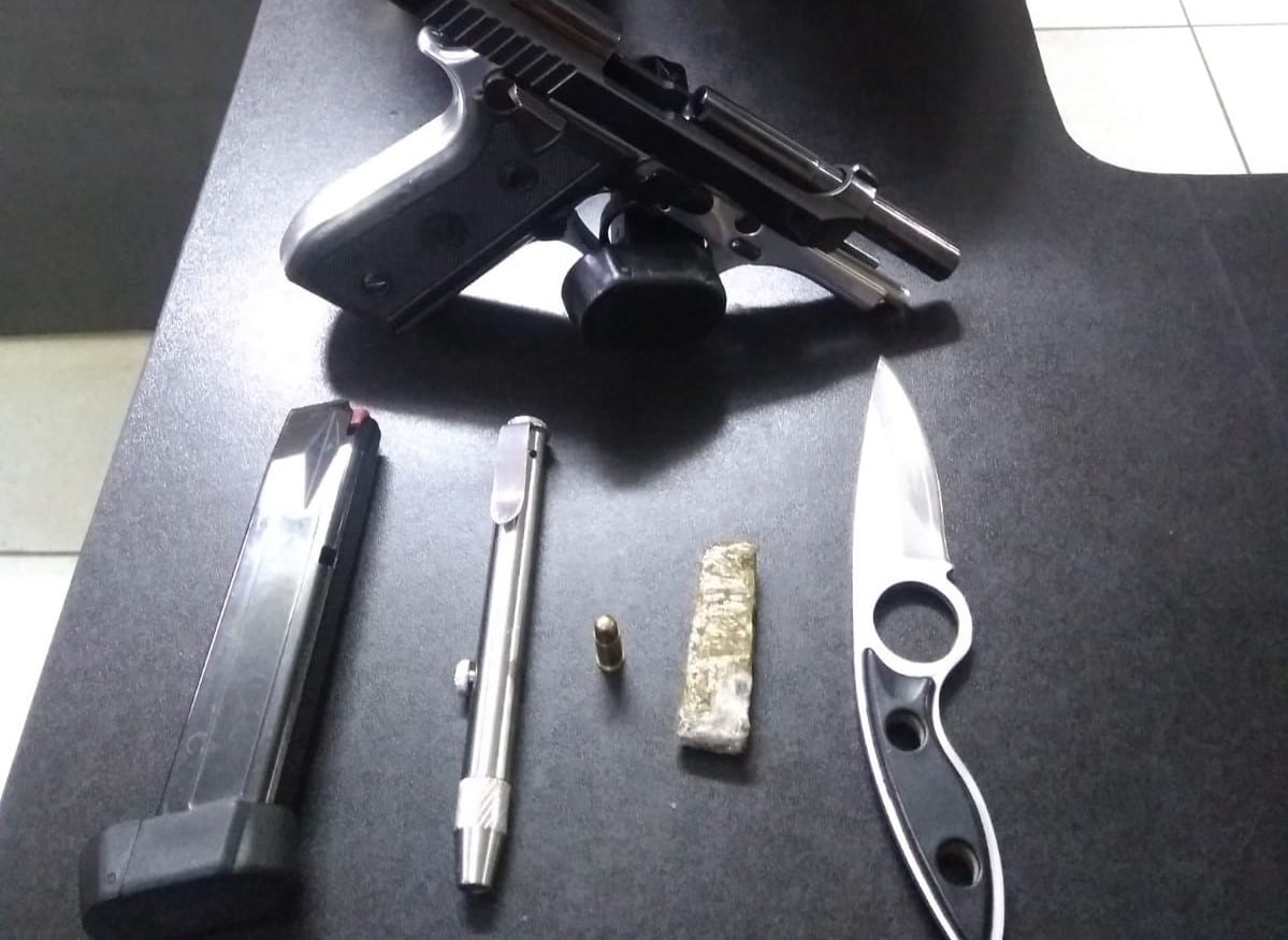 A Polícia Militar prendeu dois homens na Rua 6 com a Avenida 38, na Vila Operária, durante patrulhamento da Força Tática por porte ilegal de arma de fogo e porte de drogas. Segundo o boletim de ocorrência, um deles tentou se esconder dentro do veículo abordado no trecho. Na busca pessoal, foi localizado com o primeiro homem uma arma calibre .635, uma “arma-caneta”, municiada e uma faca. Já com o segundo rapaz nada de ilícito foi encontrado mas confessou que no veiculo que eles estavam havia uma pistola .380 com dois carregadores de sua propriedade, ambas armas sem numeração. No veiculo também foi encontrado uma porção de maconha. Ambos foram presos e levados ao plantão policial.