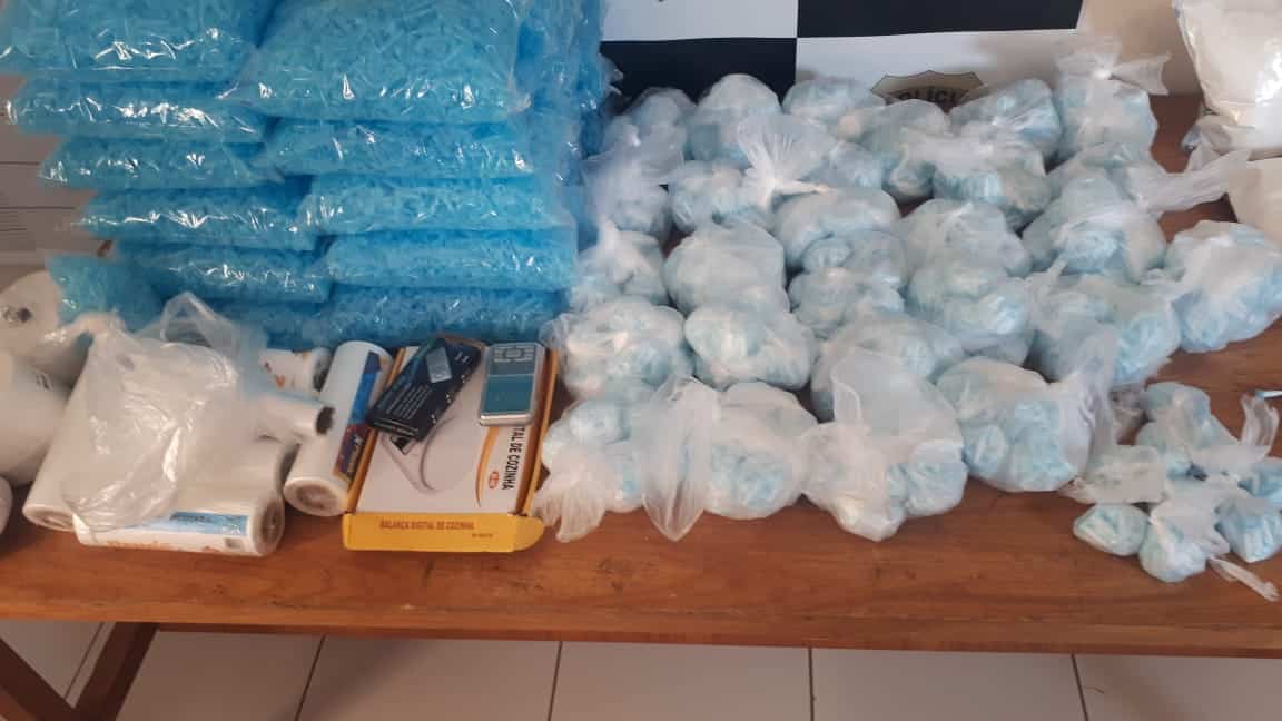 Indagado sobre a denúncia, o suspeito confessou que guardava no seu quarto bastante droga. Diante do flagrante, as equipes adentraram na residência e lograram êxito em localizar 8.324 eppendorfs de cocaína, contendo 6,322 kg da droga, 2,308 kg de pasta base, 35.000 eppendorfs vazios, duas balanças de precisão e vários apetrechos para o embalo e comercialização de drogas.