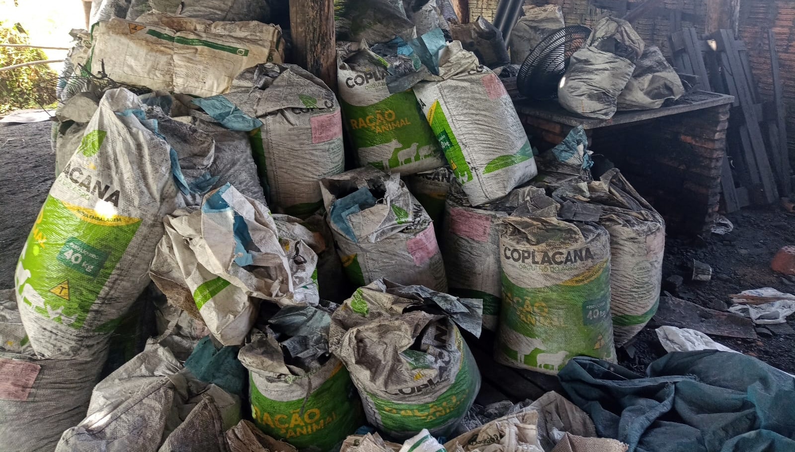 Foi realização também uma minuciosa inspeção em todo o estoque existente e apreendidos 1.300 kg de carvão divididos em sacos de 20 kg e 27 metros cúbicos de material lenhoso (eucalipto).