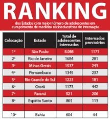 No entanto, não são em todas as situações que os menores retornam aos lares. Um levantamento feito pelo Departamento de Monitoramento e Fiscalização do Sistema Carcerário e das Medidas Socioeducativas (DMF), do Conselho Nacional de Justiça (CNJ), apontou que no ano passado em todo o Brasil havia mais de 22 mil jovens presos nas 461 unidades socioeducativas em funcionamento. A internação é a opção mais rigorosa e só pode durar três anos.